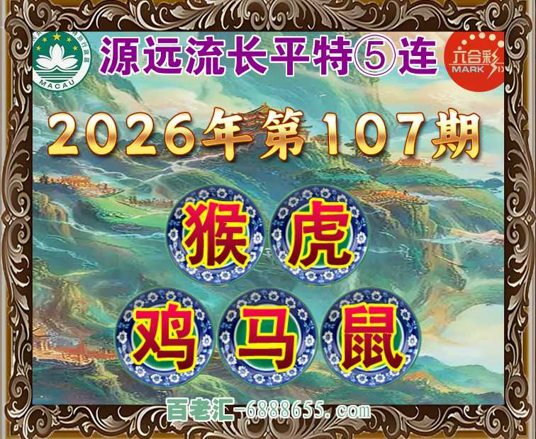107期:『源远流长』 ⛩️平特⑤连⛩️【猴虎鸡马鼠】开:00准